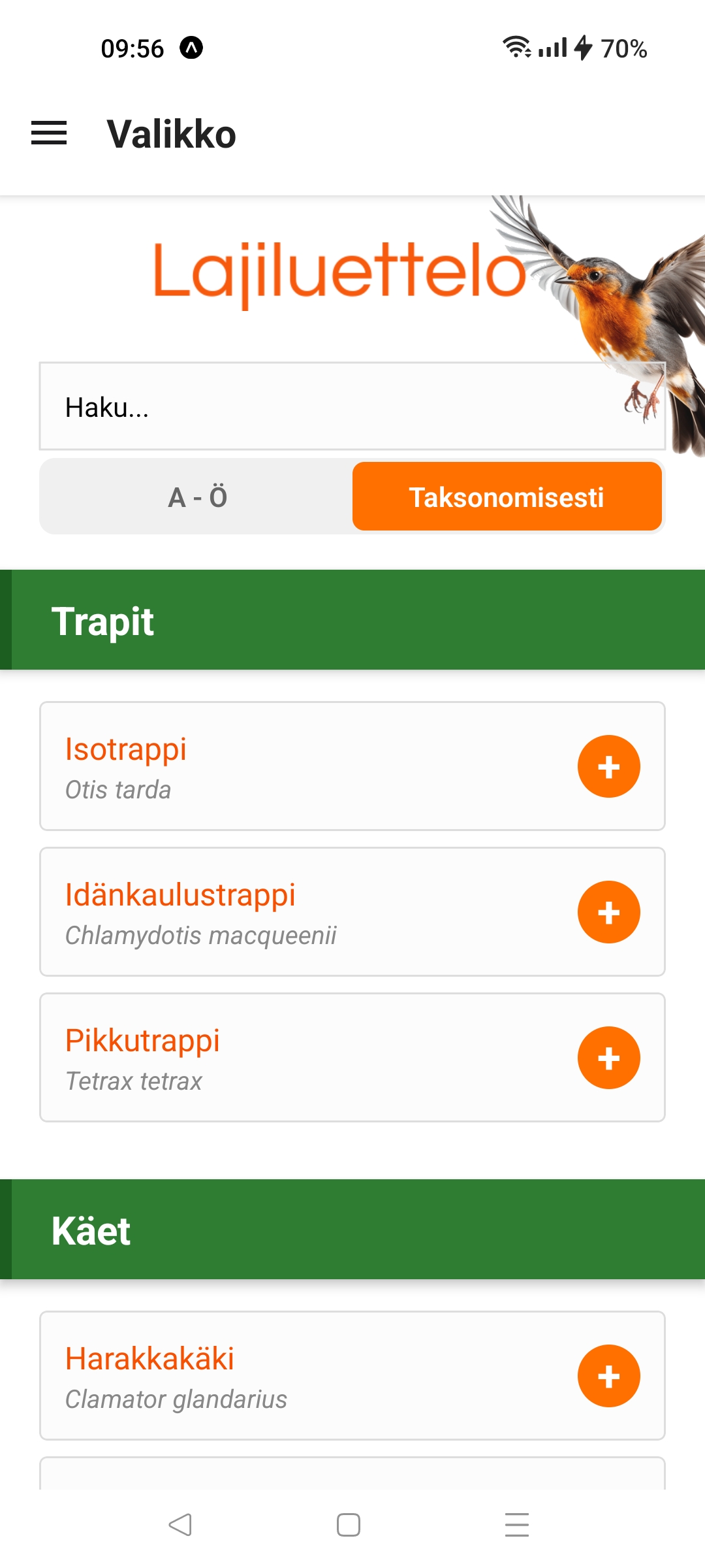 Bongaa lajeja, tutustu lintuihin, jaa havainto helposti ja saat kätevän yleiskatsauksen lintulistastasi – suoraan kännykässäsi.